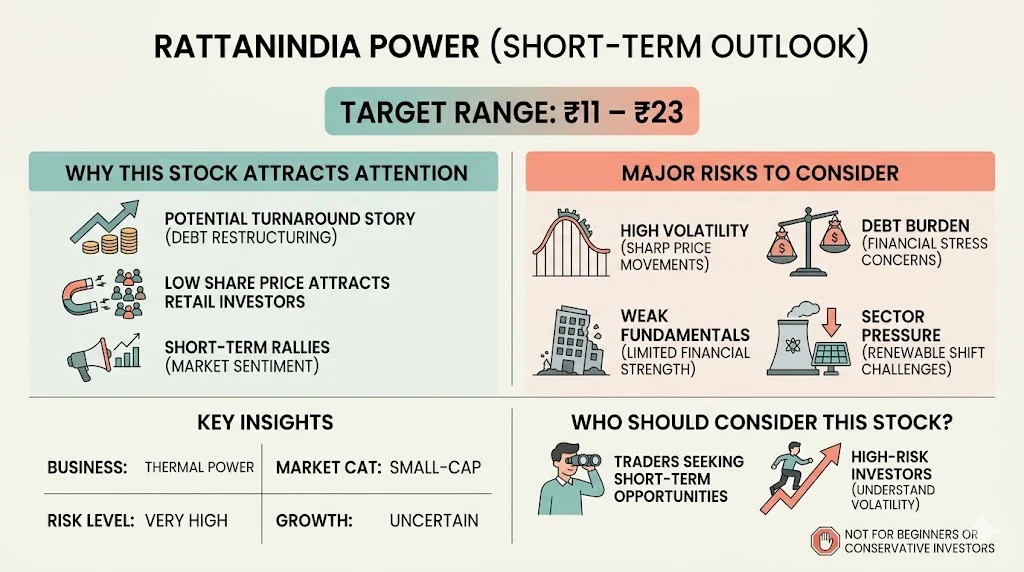 RattanIndia Power is often discussed as a speculative stock due to its sharp price movements and turnaround expectations. However, investors should understand both the potential and the risks before considering it.