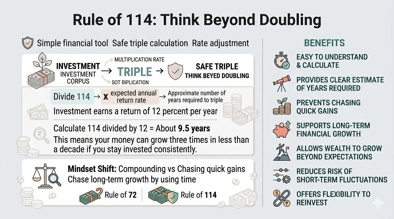 Most people only think about doubling money. But real wealth comes from long term growth, and that is where the Rule of 114 becomes useful. This simple financial tool helps you estimate how long it will take for your investment to triple in value. It works in a similar way to the Rule of 72, but instead of focusing on doubling, it shifts your thinking toward bigger, long-term goals.